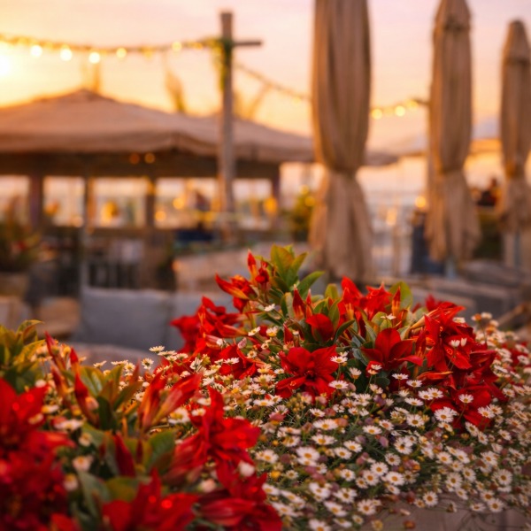 “In 2018 gaven we onze beachbar een stevige make-over en ook dit jaar werd er ontzettend veel vernieuwd. We namen zoveel mogelijk afscheid van de witte en andere gedateerde inrichting en hebben met frisse en eigentijds warme kleuren het strand van Blankenberge wat gepimpt. We kozen voor verschillende varianten van de kleur taupe, aangevuld met wit, grijs en azuurblauw. Het decor, zoals het hekwerk en de pergola’s, is opgebouwd met authentieke houtkleuren en de frisse roze bloemen zorgen voor een extra touch.”